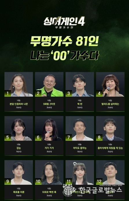 (한국글로벌뉴스 - 진입유 기자) ‘싱어게인4-무명가수전’ 본선 진출 81인이 베일을 벗었다.