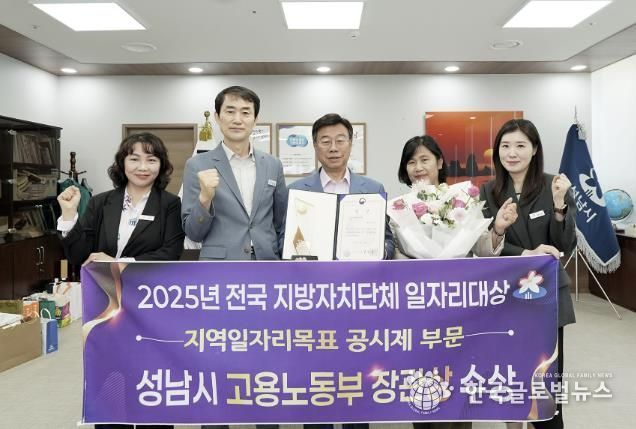 (한국글로벌뉴스 - 박소연 기자) 성남시는 고용노동부 주관 ‘2025년 전국 지방자치단체 일자리대상’에서 지역일자리목표 공시제 부문 ‘고용노동부 장관상’을 수상했다고 2일 밝혔다.