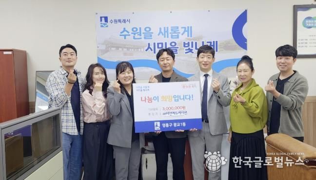 (한국글로벌뉴스 - 박소연 기자) 수원시 영통구 광교1동은 ㈜이언에듀케이션으로부터 이웃돕기 성금 300만원을 기탁받았다고 밝혔다.