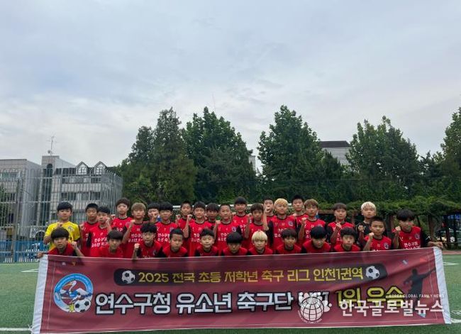 (한국글로벌뉴스 - 박지형 기자) 연수구청 유소년축구단이 ‘2025 전국 초등 축구리그(인천)’에서 11세 이하(U-11) 부문 우승을 차지하는 쾌거를 이뤘다.