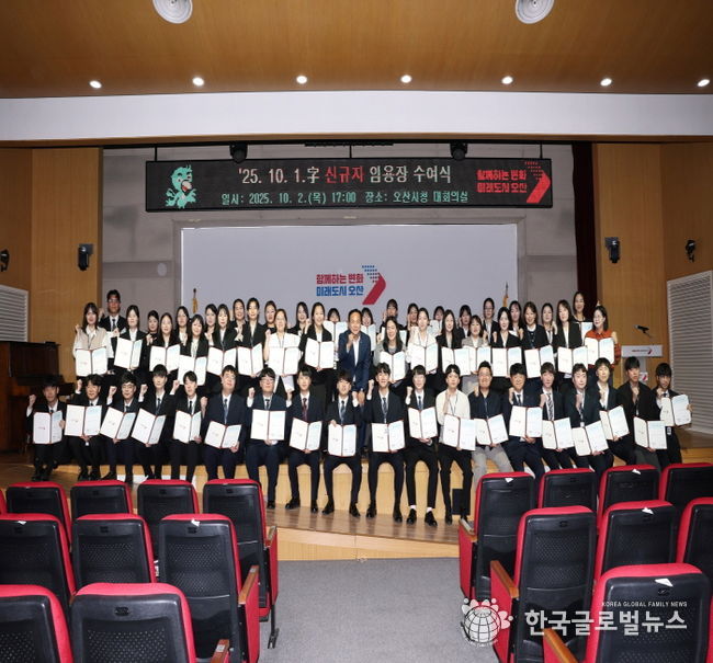 (한국글로벌뉴스 - 박소연 기자) 오산시는 지난 10월 2일 오산시청 대회의실에서 2025년 신규 임용 공직자 52명을 대상으로 임용장 수여식을 개최했다고 밝혔다.