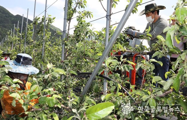 (한국글로벌뉴스 - 박소연 기자) 무주군이 잦은 기상 이변으로 인한 사과 수급 불안 요인을 차단하고 일손 부족으로 어려움을 겪는 농가들을 돕기 위해 현장에서 직접 사과 수확(후지)을 지원하고 있다고 밝혔다.