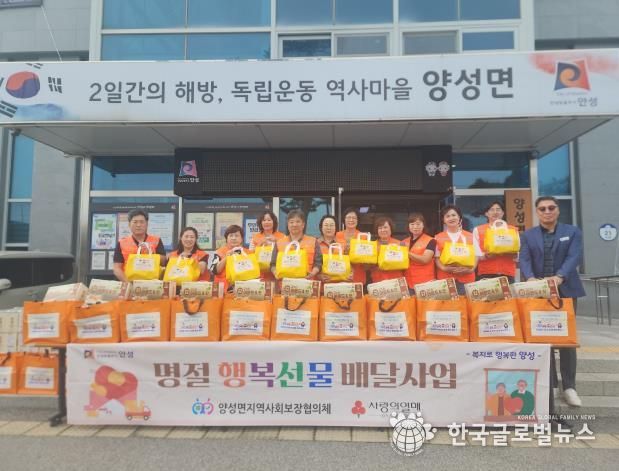 (한국글로벌뉴스 - 박소연 기자) 안성시 양성면지역사회보장협의체는 2025년 추석명절을 맞이하여 지난 2일 목요일, 관내 저소득층 및 복지사각지대 35가구에게 송편과 생필품으로 구성된 추석명절 행복선물꾸러미를 전달했다.