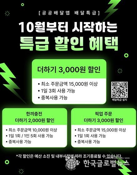 (한국글로벌뉴스 - 박종욱 기자) 부천상권활성화센터는 부천시민을 대상으로 공공배달앱 ‘배달특급’을 통해 소상공인 지원과 지역경제 활성화를 위한 다양한 소비자 프로모션을 10월에 진행한다고 밝혔다.