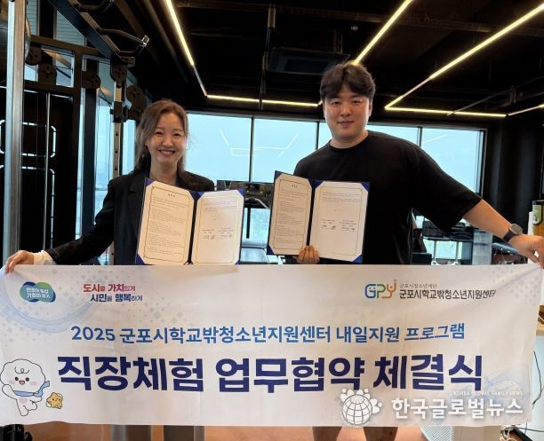 (한국글로벌뉴스 - 박소연 기자) 군포시청소년재단(대표이사 김덕희), 군포시학교밖청소년지원센터(센터장 강연미)는 조직 운영 및 마케팅에 관심 있는 학교 밖 청소년의 진로 탐색과 현장 경험 확대를 위해 내셔널국가대표PT센터(대표 김택용)와 직장체험 업무협약을 체결했다고 밝혔다.