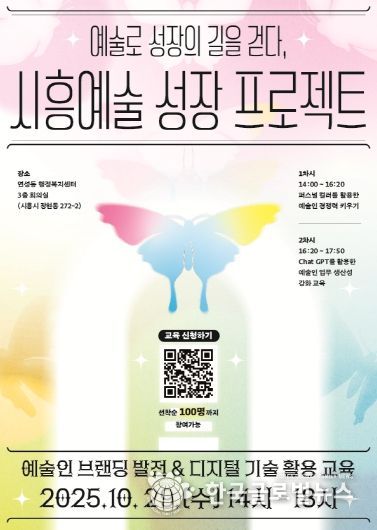 시흥예술 성장 프로젝트는 ‘문화예술 성장 및 예술인 브랜딩 발전’이라는 주제로 1부 퍼스널 컬러 교육과 2부 챗지피티(ChatGPT)를 활용한 디지털 교육으로 나눠 진행된다.