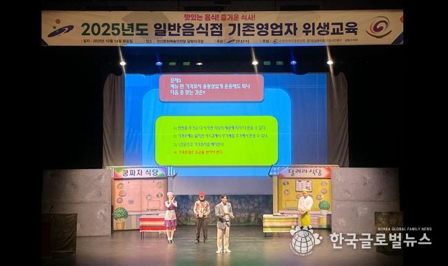 (한국글로벌뉴스 - 박소연 기자) 안산시는 지난 14일 안산문화예술의전당에서 관내 일반음식점 영업자 500여 명을 대상으로 기존 영업자 위생교육을 실시했다고 15일 밝혔다.