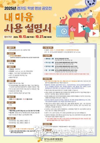 (한국글로벌뉴스 - 박소연 기자) 경기도교육복지종합센터가 경기도교육청 소속 초 중 고등학교 학생들을 대상으로 ‘2025년 경기도 학생 영상 공모전’을 개최한다.