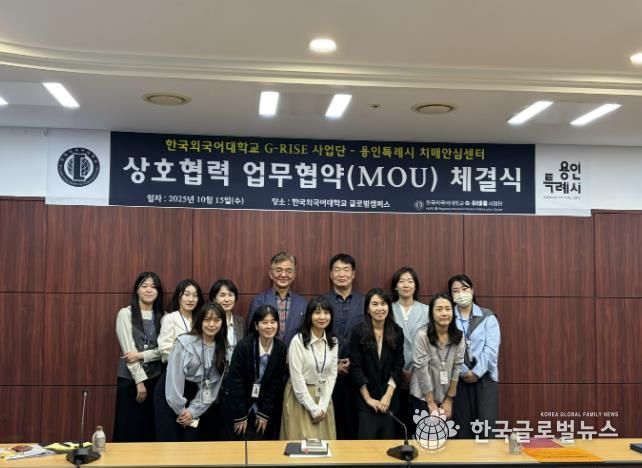 (한국글로벌뉴스 - 박소연 기자) 용인특례시 3개 구 보건소 치매안심센터는 지난 15일 한국외국어대학교RISE(지역혁신중심 대학지원체계)사업단과 지역사회 치매 관리를 위한 업무협약을 했다고 16일 밝혔다.