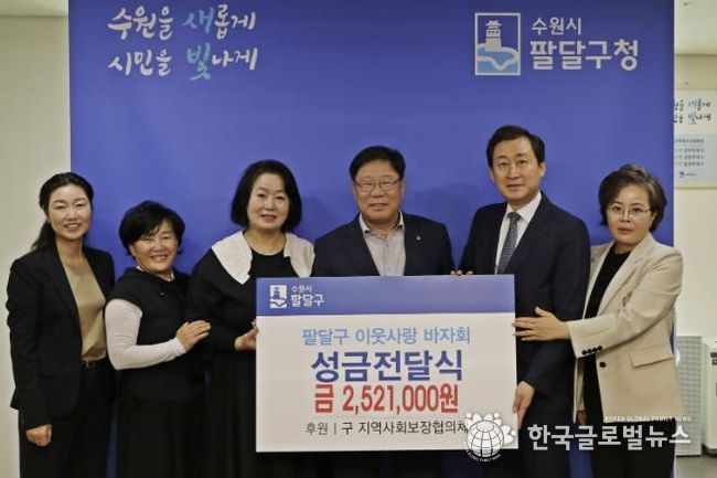 (한국글로벌뉴스 - 박소연 기자) 수원시 팔달구와 구 지역사회보장협의체는 지난 15일 구청장실에서 ‘팔달구 이웃사랑 바자회’ 성금 전달식을 가졌다.