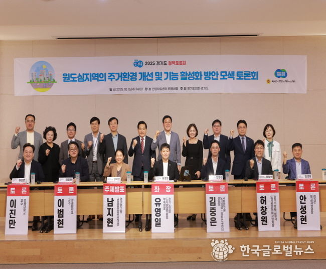 (한국글로벌뉴스 - 박소연 기자) 경기도의회 도시환경위원회 유영일 부위원장(국민의힘, 안양5)이 좌장을 맡은 '원도심지역의 주거환경 개선 및 기능 활성화 방안 모색 토론회'가 10월 15일 안양아트센터 컨벤션홀에서 개최됐다. 이번 토론회는 경기도와 경기도의회가 공동으로 주최하는 ‘2025 경기도 정책토론회’의 일환으로 개최됐다.