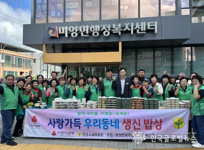 (한국글로벌뉴스 - 박소연 기자) 지난 10월 16일, 안성시 미양면 새마을부녀회는 미양면행정복지센터 부녀회 조리실에서 ‘사랑가득 우리동네 생신밥상’ 행사를 열어 관내 어르신들께 도시락을 전달했다.