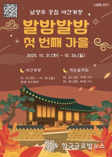 시 관계자는 “남양주 궁집은 고즈넉한 전통 건축미와 정취를 간직한 공간으로 이번 행사를 통해 관람객이 특별한 가을밤의 감성을 느낄 수 있을 것이라 기대한다”며 “앞으로도 남양주 궁집이 도심 속의 힐링 명소로 활용될 수 있도록 다양한 프로그램을 진행하겠다”고 말했다.