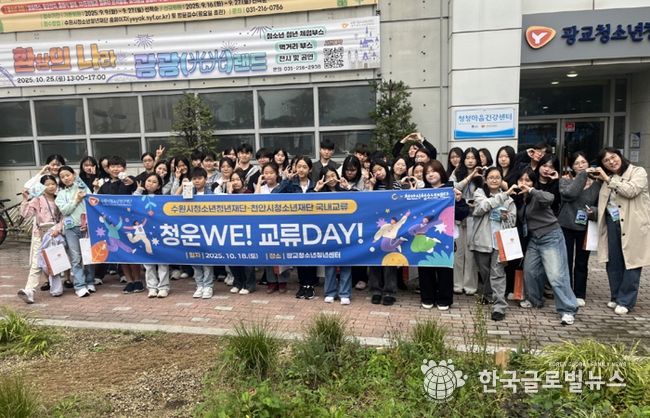(한국글로벌뉴스 - 박소연 기자) 수원시청소년청년재단 동부청소년지역센터는 천안시청소년재단과 함께 2025 수원·천안 지역 청소년운영위원회 교류활동‘청운WE! 교류DAY’를 10월 25일 광교청소년청년센터에서 성황리에 마무리했다.