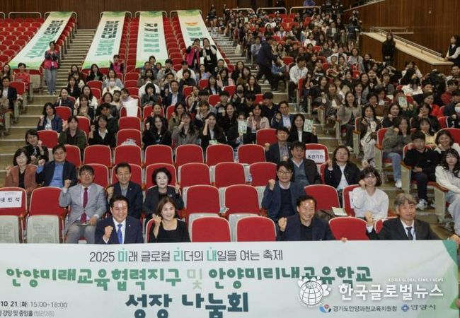(한국글로벌뉴스 - 박소연 기자) 경기도안양과천교육지원청은 10월 21일 안양시청에서‘지역교육협력을 통한 미래 글로컬 리더의 내일을 여는 축제’를 주제로'2025 안양미래교육협력지구 및 안양미리내공유학교 성장 나눔회'를 열었다.