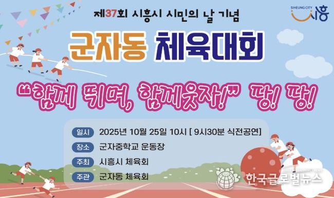 (한국글로벌뉴스 - 박소연 기자) 시흥시 군자동 체육회는 제37주년 시민의 날을 맞아 오는 25일 군자중학교 운동장에서 ‘함께 뛰며, 함께 웃자’ 체육대회를 개최한다.