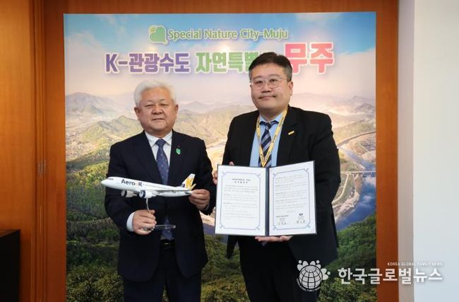 (한국글로벌뉴스 - 박소연 기자) 무주군은 지난 10일 에어로케이항공(주)과 ‘지역관광 활성화 및 상생 협력체계 구축을 위한 업무협약’을 체결했다.