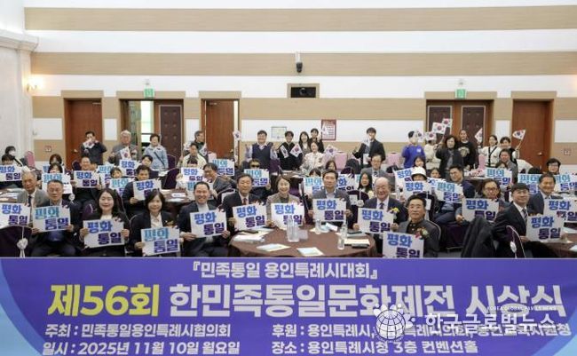 (한국글로벌뉴스 - 박소연 기자) 용인특례시는 10일 시청 컨벤션홀에서 민족통일 용인특례시협의회 주관으로 ‘민족통일 용인특례시대회와 제56회 한민족통일문화제전 시상식’이 열렸다고 밝혔다.