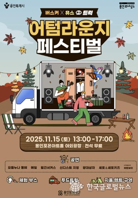 (한국글로벌뉴스 - 박소연 기자) 용인문화재단은 오는 11월 15일 오후 1시부터 5시까지 용인포은아트홀 야외광장에서 시민들과 함께하는 가을맞이 축제 '2025 어텀라운지페스티벌'을 개최한다.