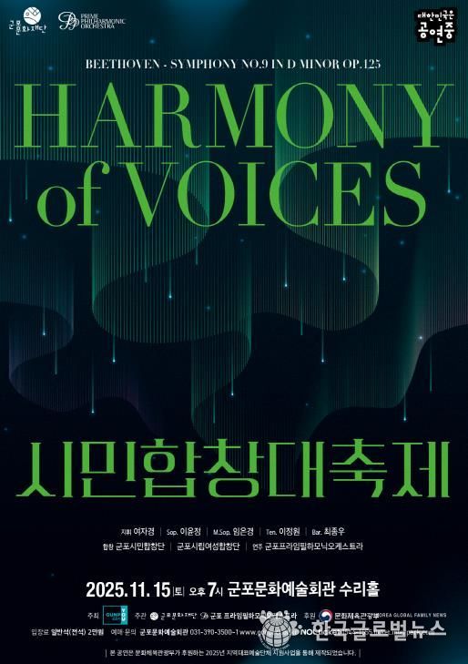 (한국글로벌뉴스 - 박소연 기자) 군포문화재단은 오는 11월 15일 오후 7시, 군포문화예술회관 수리홀에서 시민과 함께하는 대규모 클래식 공연 “2025 시민합창대축제”를 개최한다.