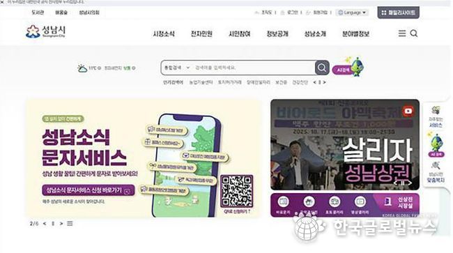 (한국글로벌뉴스 - 박소연 기자) 성남시는 내년 3월 서비스 개시를 목표로 시 홈페이지 전면 개편을 추진 중인 가운데 지능형 검색 서비스를 시범 운영한다고 13일 밝혔다.