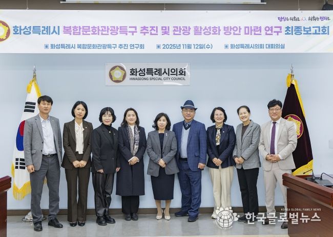 (한국글로벌뉴스 - 박소연 기자) 화성특례시의회 의원연구단체인 ‘화성특례시 복합문화관광특구 추진 연구회’가 12일 대회의실에서 연구용역 최종보고회를 가졌다.