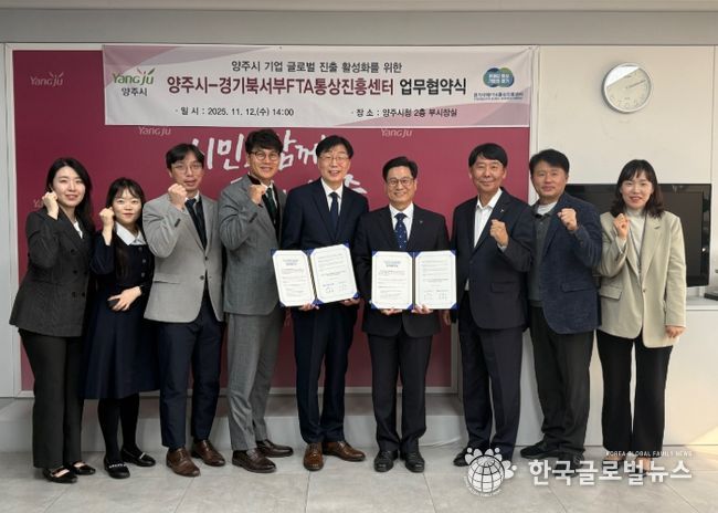 (한국글로벌뉴스 - 박종욱 기자) 양주시가 지난 12일, 경기북서부FTA통상진흥센터와 관내 중소기업의 수출 경쟁력 강화를 위한 업무협약을 체결했다.