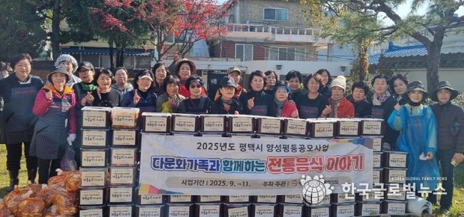 (한국글로벌뉴스 - 박소연 기자) 평택시여성단체협의회가 지난 12일 평택시예절교육관에서 여성단체 회원들과 다문화가족이 참여한 가운데 ‘맛과 정을 나누는 사랑의 김장담그기’ 행사를 진행했다.
