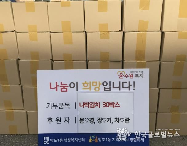 문♡경, 정♡기, 차♡란 후원자 3명은 “서로 도우며 살아야 한다는 평소 신념대로 내가 가진 아주 작은 것을 나누었을 뿐이다. 나박김치 드시면서 추운날씨지만 따뜻하게 겨울 보내셨으면 좋겠다”고 말했다.