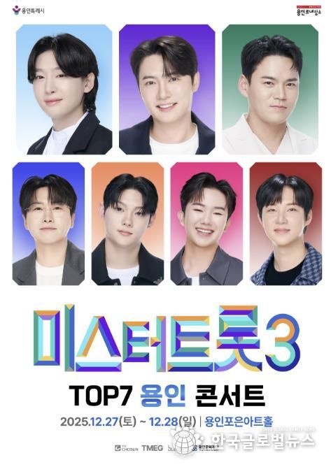 (한국글로벌뉴스 - 박소연 기자) 용인문화재단은 오는 12월 27일부터 28일까지 용인포은아트홀에서 ‘미스터트롯3 TOP7 콘서트’를 선보인다. 공연은 27일 오후 1시·6시, 28일 오후 1시 총 3회 진행된다.