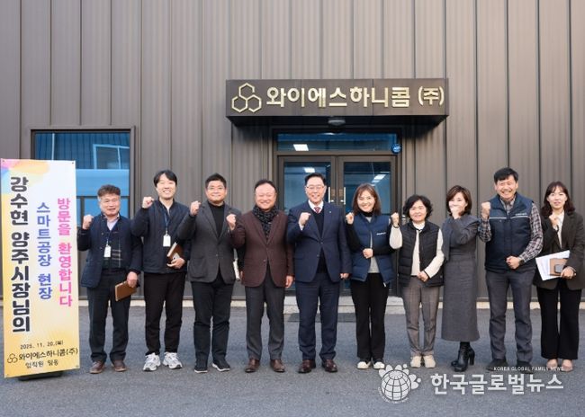 (한국글로벌뉴스 - 박종욱 기자) 양주시가 지난 20일 백석읍 홍죽리에 위치한 와이에스하니콤㈜(대표 유춘희)을 방문해 기업의 애로사항을 청취하고 지원 방안을 논의했다.