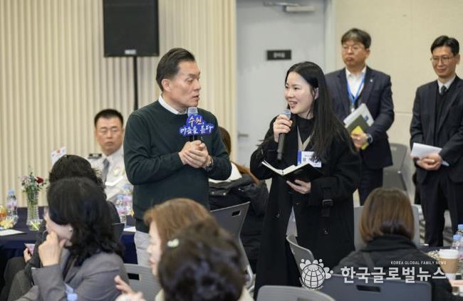 지난 18일 수원시농수산물도매시장 대회의실에서 열린 권선1동 새빛만남. 자녀가 효정초등학교에 다니는 학부모가 “사고 위험이 있는 등하굣길을 개선해 주셨으면 한다”고 건의했다.