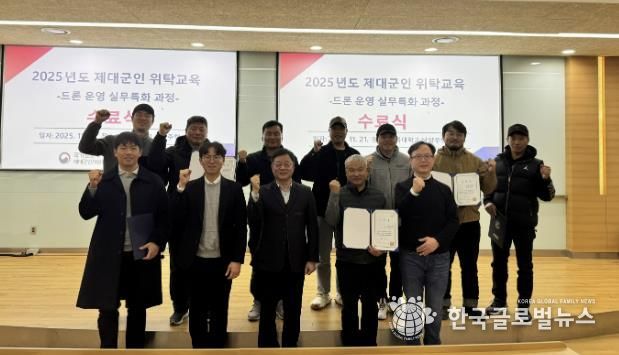 (한국글로벌뉴스 - 박소연 기자) 경기북부보훈지청 제대군인지원센터는 11월 21일에 경복대학교 평생교육대학(경기 남양주)에서 9월에 시작된 ‘드론 운영 실무특화’ 위탁교육과정을 성공적으로 마무리하고, 총 10명의 교육생 전원이 교육을 수료했다고 밝혔다.
