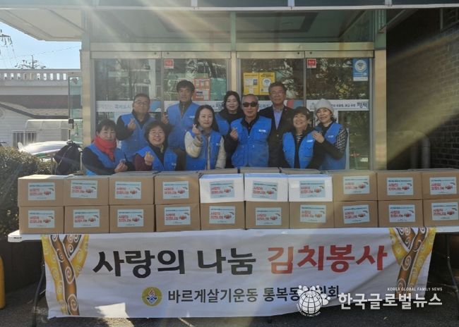 (한국글로벌뉴스 - 박소연 기자) 평택시 통복동 바르게살기위원회는 지난 20일과 21일 이틀간 ‘사랑의 김장 나눔’ 행사를 개최하고 관내 취약계층에 김장 김치 150㎏을 전달했다.