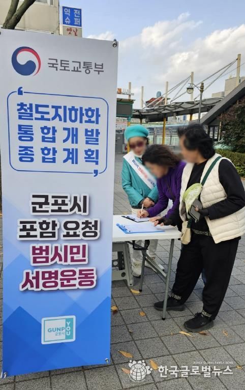 (한국글로벌뉴스 - 박소연 기자) 군포시는 경부선·안산선 지상 구간 철도지하화의 국가 계획 반영을 위해 추진해 온 시민 서명운동의 성과를 담은 서명부를 11월 27일 국토교통부에 직접 제출한다고 밝혔다.
