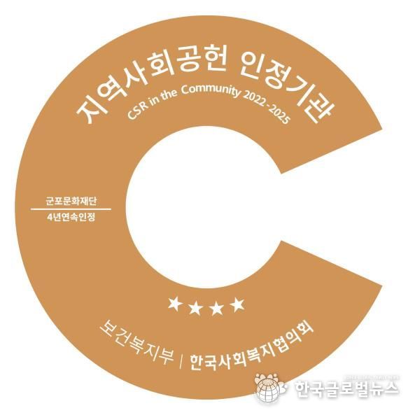 (한국글로벌뉴스 - 박소연 기자) 군포문화재단이 지역사회공헌 인정제 4년 연속 선정이라는 성과를 거두며, 지역사회 공익활동에서 지속성과 우수성을 다시 한 번 인정받았다. 이는 전국 문화재단 가운데 유일하게 4년 연속 선정된 사례이다.