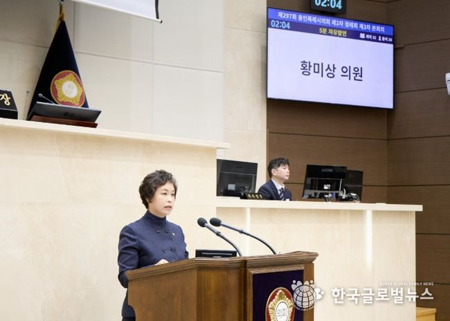 (한국글로벌뉴스 - 박소연 기자) 용인특례시의회 황미상 의원(포곡·모현·유림·역북·삼가동/더불어민주당)은 26일 열린 제297회 2차 정례회 본회의 5분 자유발언을 통해 용인 ‘무명의병(無名義兵) 보존 정책’의 체계적 추진과 처인구 대중교통 사각지대 해소를 위한 버스 노선 전면 재정비를 촉구했다.