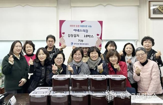 (한국글로벌뉴스 - 박소연 기자) 수원시 장안구 소재 아녜스의집은 지난 25일 김장철을 맞아 수원시 장안구 정자3동에 김장김치 18박스를 기부했다. 이번 김장김치는 시설에 입소한 어르신들이 직접 담근 것으로 정성스러운 나눔의 의미를 더했다.
