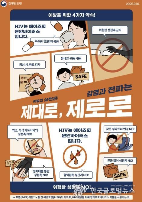 에이즈를 예방하기 위해서는 위험한 성접촉을 피하고, 필요시 올바르게 콘돔을 사용하는 것이 중요하다. 또한 감염이 의심될 경우 즉시 검사를 받아야 하며, 노출 전 예방요법 프렙(PrEP) 약제를 꾸준히 복용하는 것도 감염 예방에 도움이 된다.