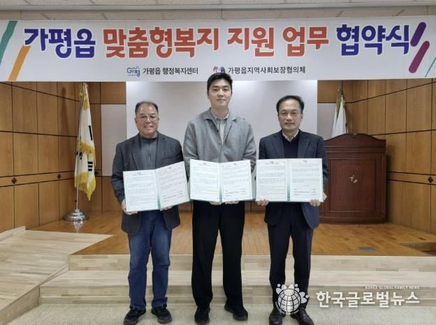 (한국글로벌뉴스 - 박소연 기자) 가평군 가평읍 행정복지센터는 최근 가평읍지역사회보장협의체(지사협), 유일닭강정과 ‘맞춤형복지 지원 업무협약’을 체결했다.