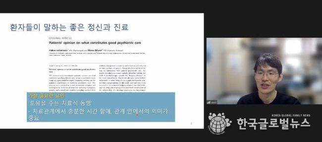 (한국글로벌뉴스 - 박소연 기자) 시흥시정신건강복지센터는 지난 12월 2일 신천연합병원 정신건강의학과 장창현 과장을 초청해 실무자를 대상으로 ‘비판정신의학 살펴보기’ 온라인 교육을 진행했다. 교육에는 정신건강 관련 실무자 40여 명이 참여해 강의와 질의응답이 이어졌다.