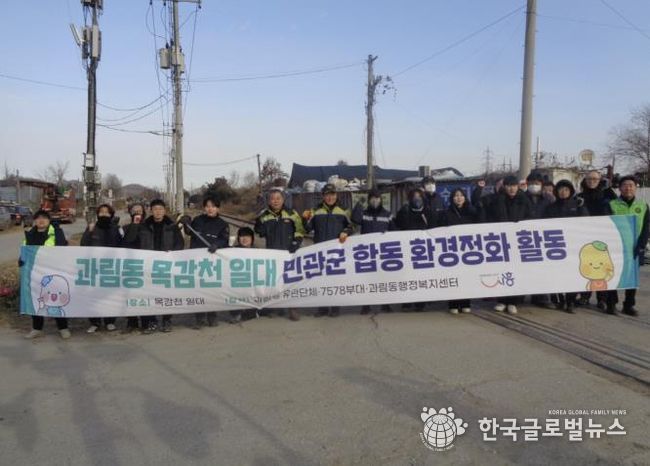 (한국글로벌뉴스 - 박소연 기자) 시흥시 과림동 행정복지센터는 지난 12월 3일 관내에 주둔하는 제7578부대 및 동 관계단체와 합동으로 목감천 일대 환경정화 활동을 진행했다.