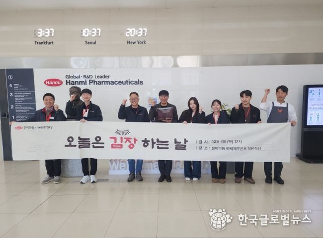 (한국글로벌뉴스 - 박소연 기자) 평택시 팽성읍 추팔산업단지에 있는 ‘한미약품 평택제조본부’에서 올 겨울을 앞두고 지역사회 이웃들과 따뜻한 정을 함께 나누기 위하여, 직원들이 직접 담근 김장 김치 10㎏ 60통을 팽성읍에 기부했다.