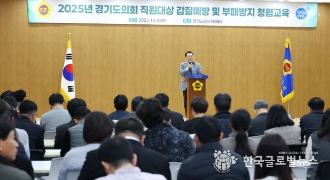 (한국글로벌뉴스 - 박소연 기자) 경기도의회는 9일 오전 의회 대회의실에서 전 직원을 대상으로 ‘갑질예방 및 부패방지 청렴교육’을 실시했다.