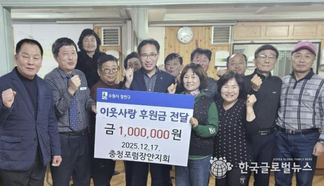 이일희 장안구청장은 “충청포럼 장안지회의 지속적인 관심과 후원에 감사드린다”며 “기부금은 지역사회 복지와 주민 지원을 위해 소중히 사용될 것”이라고 전했다.
