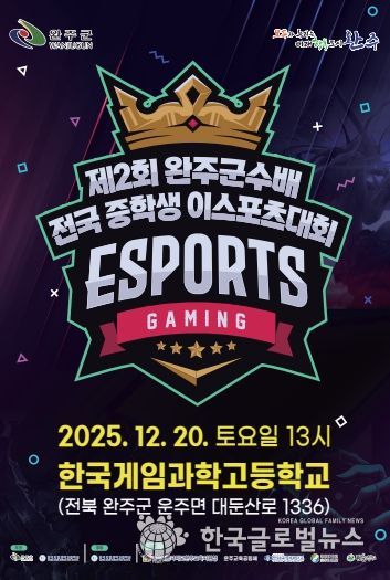 (한국글로벌뉴스 - 박지형 기자) 완주군이 전국 중학생을 대상으로 한 공식 e스포츠 대회를 개최한다.
