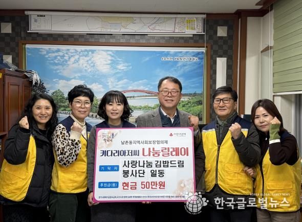 (한국글로벌뉴스 - 박소연 기자) 오산시 남촌동 행정복지센터는 지난 18일 ‘사랑나눔 김밥드림 봉사단’이 연말을 맞아 지역 내 어려운 이웃을 돕기 위해 성금 50만 원을 기탁했다고 밝혔다.