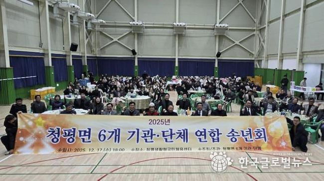 (한국글로벌뉴스 - 박소연 기자) 가평군 청평면은 지난 17일 청평생활형국민체육센터에서 ‘2025년 청평면 6개 기관·단체 연합 송년회’를 개최하고 한 해를 마무리하는 시간을 가졌다.