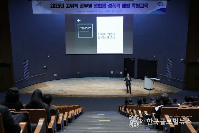 (한국글로벌뉴스 - 박소연 기자) 경기도는 22일 경기도청 다산홀에서 김동연 경기도지사를 포함해 고위직 공무원 약 50명을 대상으로 ‘직장 내 성희롱·폭력 예방 특별교육’을 실시했다.