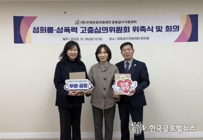 (한국글로벌뉴스 - 박소연 기자) (재)안양군포의왕과천 공동급식지원센터는 지난 19일 재단 내 성희롱성폭력 사건에 대한 공정하고 전문적인 처리체계를 구축하기 위해 ‘성희롱·성폭력 고충심의위원회’를 구성하고 위촉식을 개최했다고 22일 밝혔다.